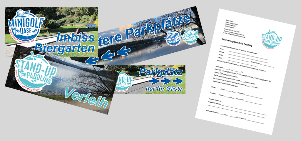 Die neue Saison startet bald. Und da das Abgebot in diesem Jahr mit Stand-Up-Paddeling erweitert wird, erstellen wir für den Minigolfplatz als Harkartsee mehrere Werbebanner, die direkt an der Straße am Zaun aufgehangen werden. So werden Auto- und Motorradfahrer direkt auf den Platz aufmerksam gemacht. Zusätzlich zu den Bannern wurden auch die entsprechenden Mietverträge für…